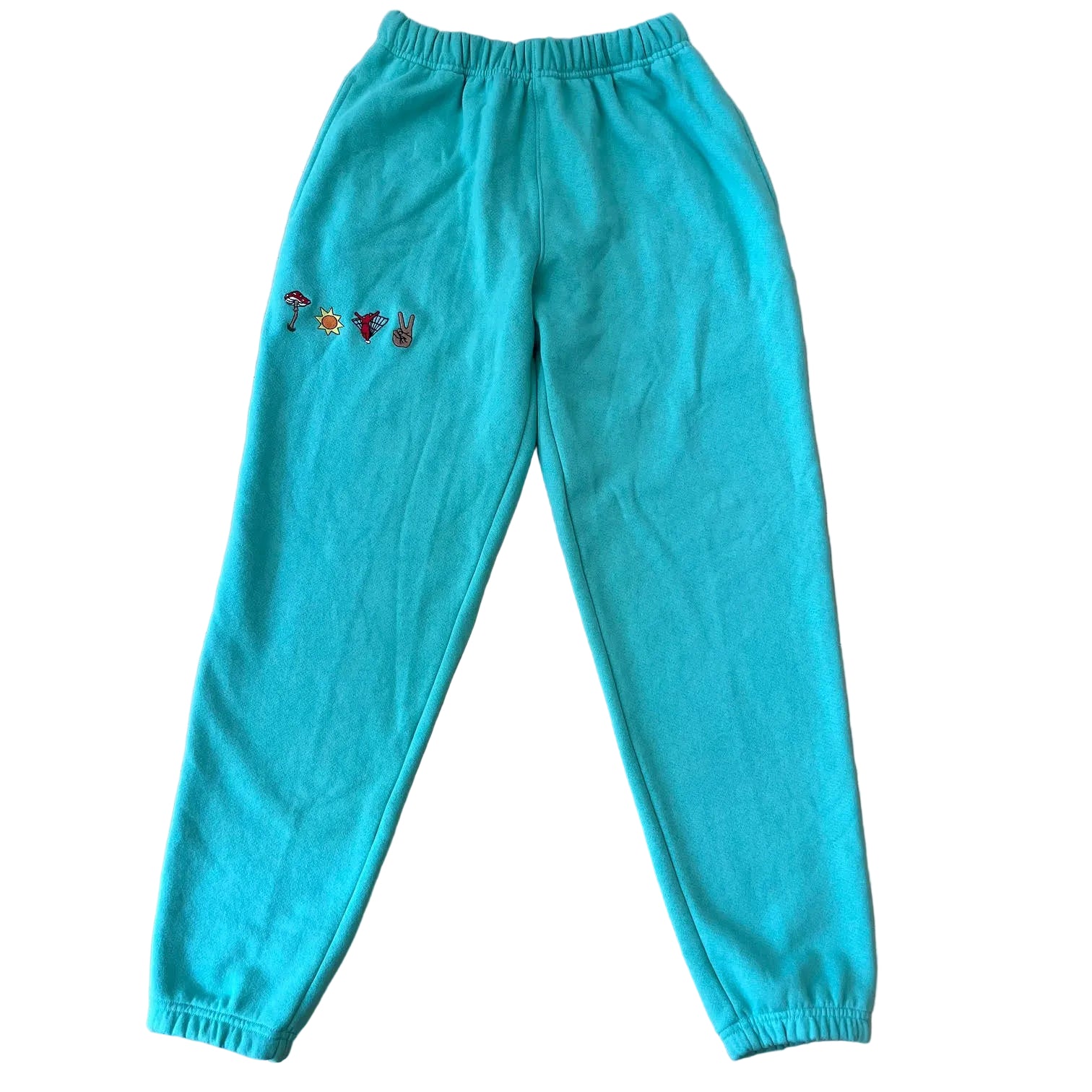Featured here in a beautiful summer green is the Esalen 4 Mini Embroidered Jogger Pant. Uniquely designed to showcase four different motifs, this pant has two lined pockets and a hidden drawstring waist. Made from 100% cotton, this piece is embroidered and designed in Malibu, California. Please note that natural variation is intentional.